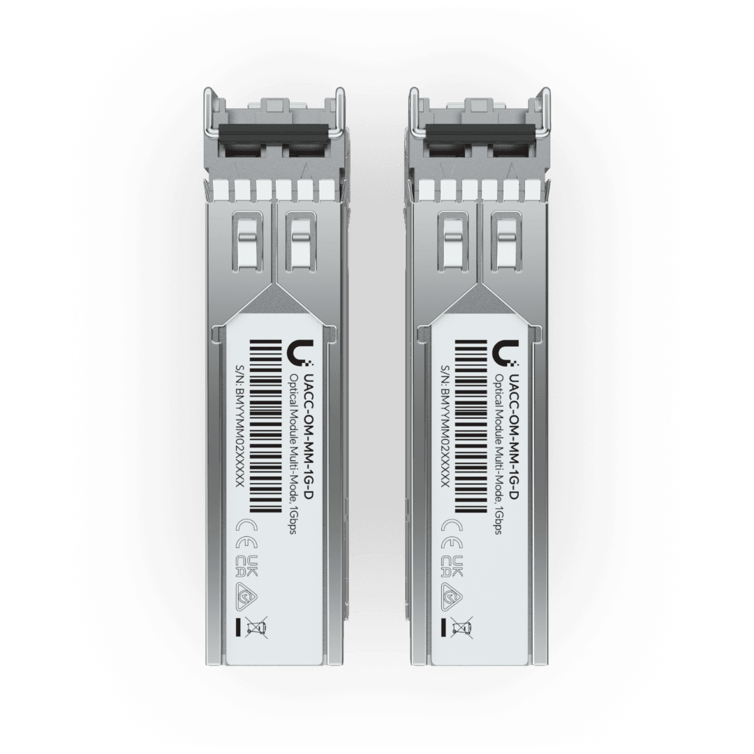 Optimize high-speed optical connectivity with the Ubiquiti Multi-Mode Fiber Modules (UACC-OM-MM-10G-D / UACC-OM-MM-1G-D), engineered to deliver reliable 10 Gbps or 1.25 Gbps data rates over 850 nm wavelengths. Featuring standard dual LC connectors, ultra-low power consumption, and thermal resilience from 0 to 70° C, these Class 1 Laser-compliant transceivers support extended cable runs up to 300m for 10G applications and 550m for 1G deployments. Available in scalable 2-pack or 20-pack options, these enterprise-grade optical modules ensure efficient, plug-and-play performance—ideal for high-capacity switch uplinks, core routing infrastructure, and reliable short-to-medium range data center interconnects. 1-Year Limited Warranty.
