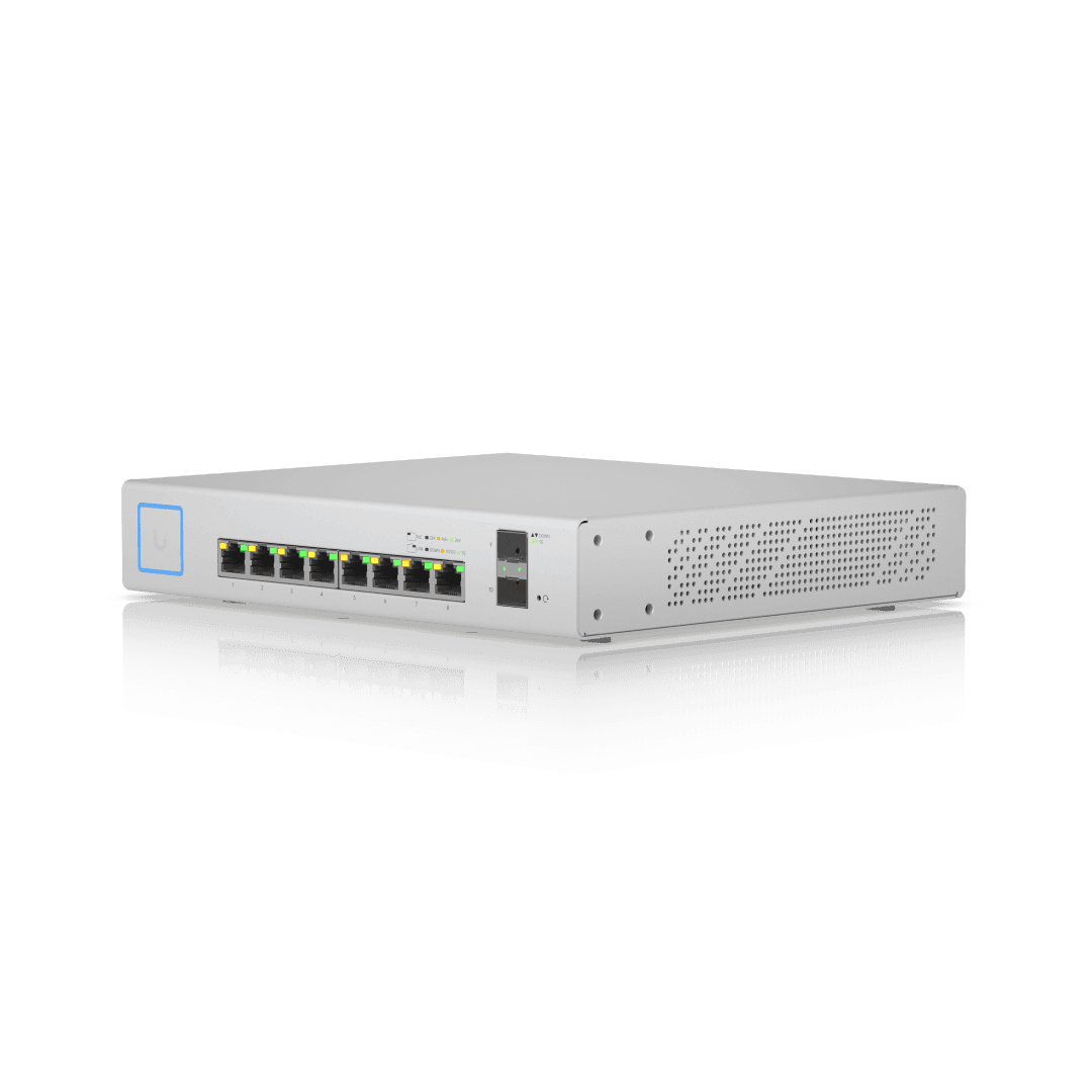 The 8 PoE, SFP (Gen1) is a compact, all-in-one Gigabit managed switch designed for small offices, retail locations, classrooms, and edge deployments that need both data connectivity and power from a single device. With built-in PoE+, it can power access points, IP cameras, and VoIP phones while simultaneously delivering reliable wired networking, reducing cable clutter and simplifying installations. Its desktop- or wall-mount design makes it ideal for space-constrained environments, while centralized management through UniFi Network ensures easy setup, monitoring, and control. The 8 PoE, SFP (Gen1) is a practical, cost-effective solution for extending professional networks with power, performance, and flexibility in one compact form. 1-Year Limited Warranty.