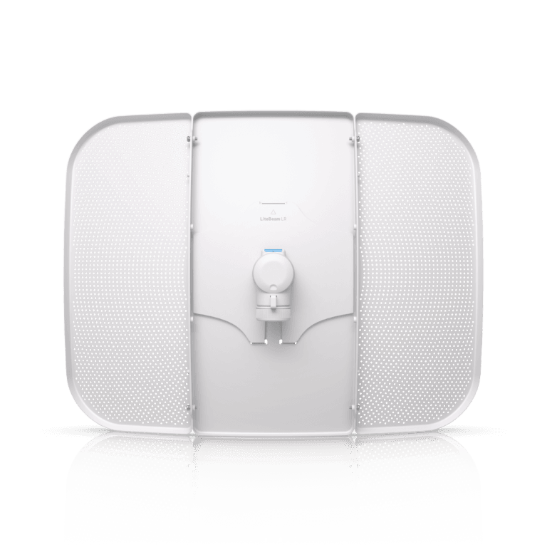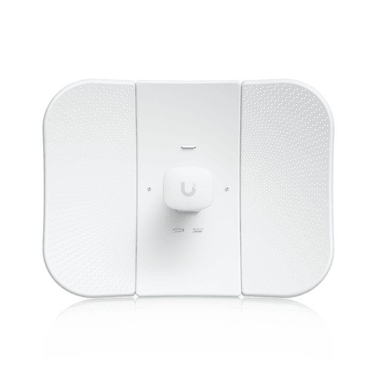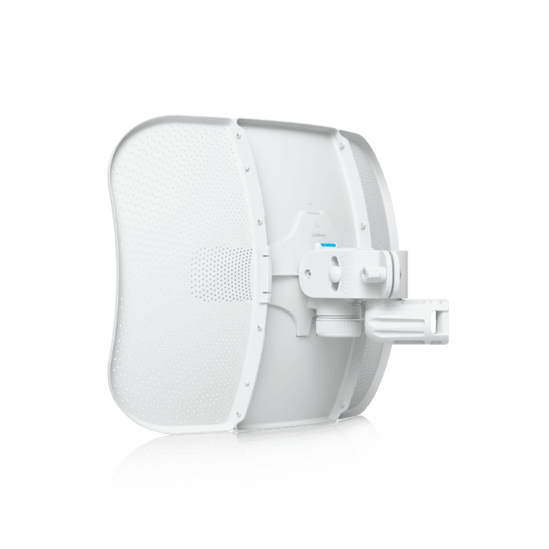 The Ubiquiti airMAX LiteBeam 5AC series offers lightweight, high-gain Point-to-Point (PtP) and Point-to-MultiPoint (PtMP) solutions for long-distance 5 GHz wireless bridging. The lineup includes the standard LBE-5AC-Gen2 with 23 dBi gain, the LBE-5AC-LR (Long-Range) with 26 dBi gain, and the LBE-5AC-XR (Extreme-Range) providing a massive 29 dBi gain and 450+ Mbps throughput. Built for resilience, these IPX6-rated units operate from -40 to 70°C, feature InnerFeed technology to eliminate cable loss, and include a dedicated 2.4 GHz management radio for rapid setup via the UISP mobile app. 1-Year Limited Warranty