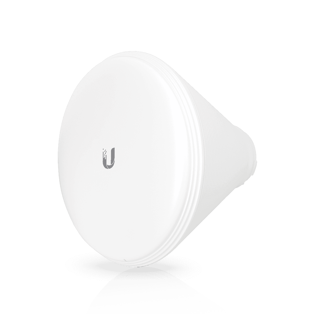 Optimize the performance of your airMAX PrismStation and IsoStation radios with the Ubiquiti Horn-5 antenna series, featuring a modular, interchangeable design engineered to eliminate sidelobes and maximize spectral efficiency in high-density co-location environments. The series offers four distinct beamwidth configurations tailored for specific sector requirements: the Horn-5-30 (19 dBi gain) for precise 30° narrow coverage, the Horn-5-45 (15.5 dBi gain) for standard 45° sectors, the Horn-5-60 (16 dBi gain) with a 60°/30° asymmetrical beam, and the wide-angle Horn-5-90 (13 dBi gain) for 90°/45° coverage. Each horn is built with UV-stabilized materials and dual-linear polarization, ensuring consistent 5.15–5.85 GHz performance and link stability even in wind speeds up to 200 km/h. 1-Year Limited Warranty.