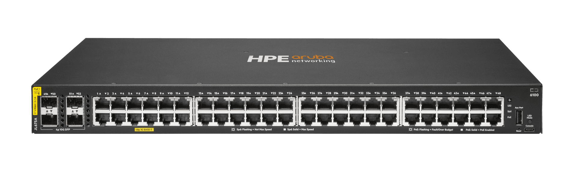 Aruba Networking CX 6100 48G Class4 PoE 4SFP+ 370W Switch