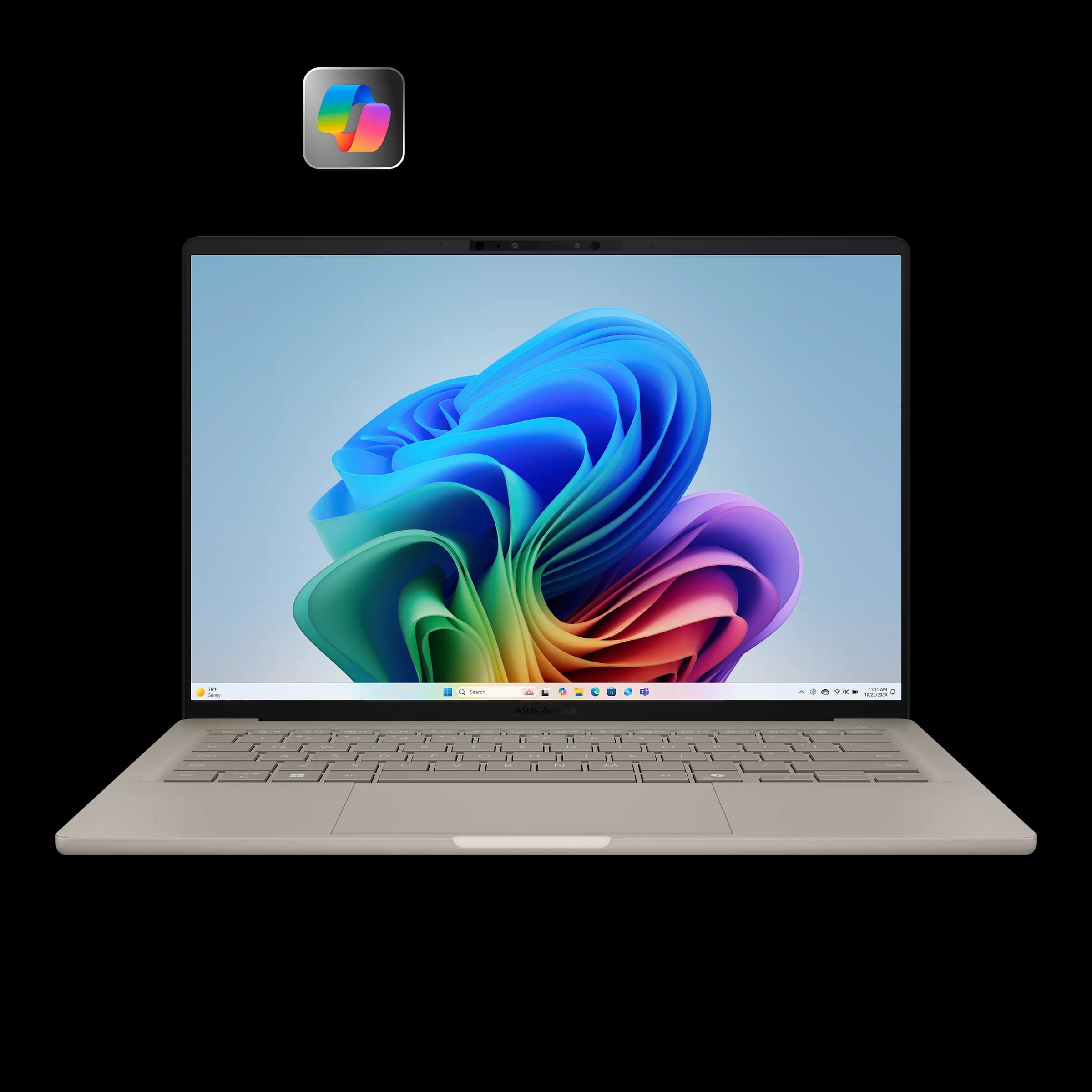 ASUS Zenbook A14 UX3407QA-SB465WSM | Snapdragon X X1 26 100 Processor | 16GB LPDDR5X on board | 1TB M.2 NVMe SSD | Shared Graphics | 14" WUXGA (1920 x 1200) IPS 60Hz | Windows 11 Home | Microsoft Office Home 2024 + Microsoft 365 Basic | Zabriskie Beige