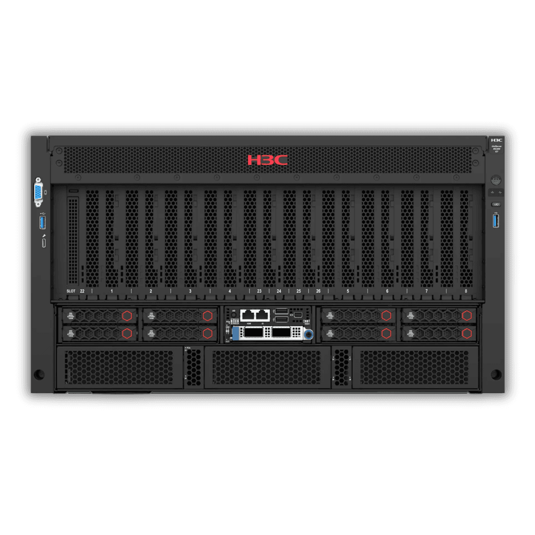 The H3C UniServer R5300 G7 is a next-generation 6U dual-socket AI server purpose-built to accelerate complex AI training, large-scale inference, and high-performance computing (HPC). Powered by dual Intel® Xeon® 6th Gen (Granite Rapids) processors with up to 86 cores each, this powerhouse supports a massive 8TB of DDR5 memory across 32 channels and up to 8 high-performance 700W GPUs to handle the most intensive neural network models. Its flexible architecture features five distinct GPU topologies—including AI parallel and HPC modes—and integrates 800Gb/s high-speed networking via CX8 SuperNIC for a 300% boost in cluster scale-out bandwidth. With support for up to 200TB of all-flash storage and a cyber-resilient management suite, the R5300 G7 offers the perfect balance of massive throughput and agile deployment for modern data centers driving the "AI in ALL" era.