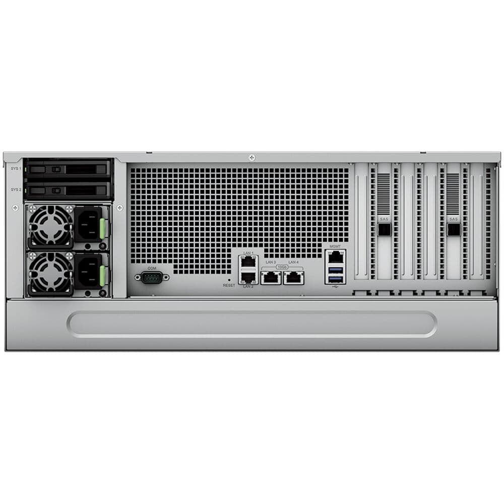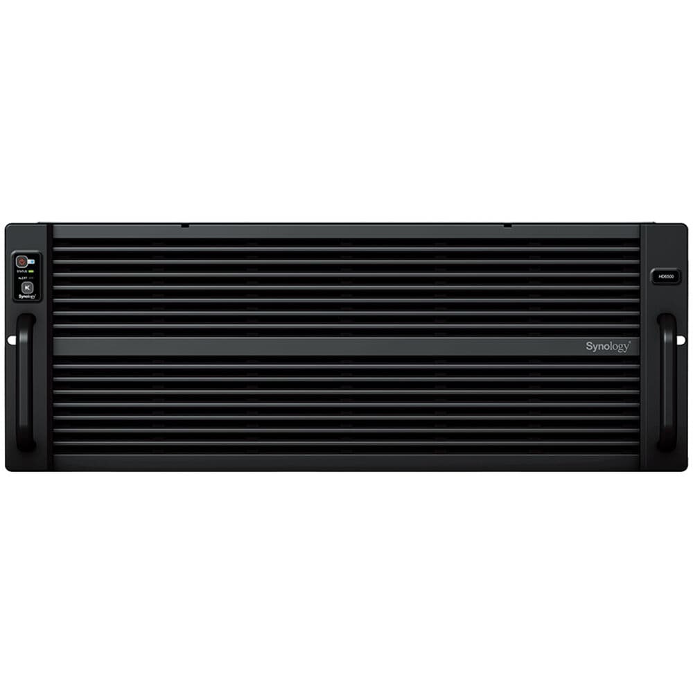 The Synology HD6500 is a high-density 60-bay 4U rackmount NAS engineered for large-scale warm and cold storage applications including enterprise backups, video post-production, and surveillance deployments. Powered by dual 2.1 GHz Intel Xeon Silver 4210R 10-core processors with 64GB DDR4 ECC registered RAM (expandable to 512GB), delivering sequential read speeds up to 6688 MB/s and sequential write speeds up to 6662 MB/s. Features dual 10 Gigabit Ethernet and two Gigabit Ethernet ports with link aggregation and failover support. Built with dual redundant 1600W power supplies, hot-swappable 80mm fans, and out-of-band (OOB) management for remote troubleshooting. Supports 3.5" SAS-3 drives and 2.5" SATA III SSDs with flexible RAID configurations (0, 1, 5, 6, 10, Basic, JBOD) and AES-NI encryption. Expandable to 300 drive bays using up to four RX6022sas expansion units with SAS multipath connectivity for enhanced performance and redundancy. Features four PCIe Gen3 slots (two x16, two x8) for network and Fiber Channel upgrades. Running on DiskStation Manager (DSM) with Synology High Availability, Snapshot Replication (RPO as low as 5 minutes), Active Backup Suite, and Surveillance Station supporting up to 150 IP cameras with centralized management. Ideal for centralized backup repositories, large-scale surveillance, and multi-site data synchronization. Includes two 480GB SATA SSDs and rail kit, backed by a 5-year limited warranty.