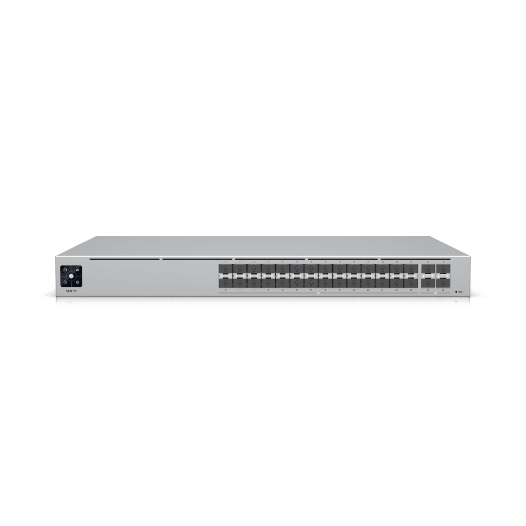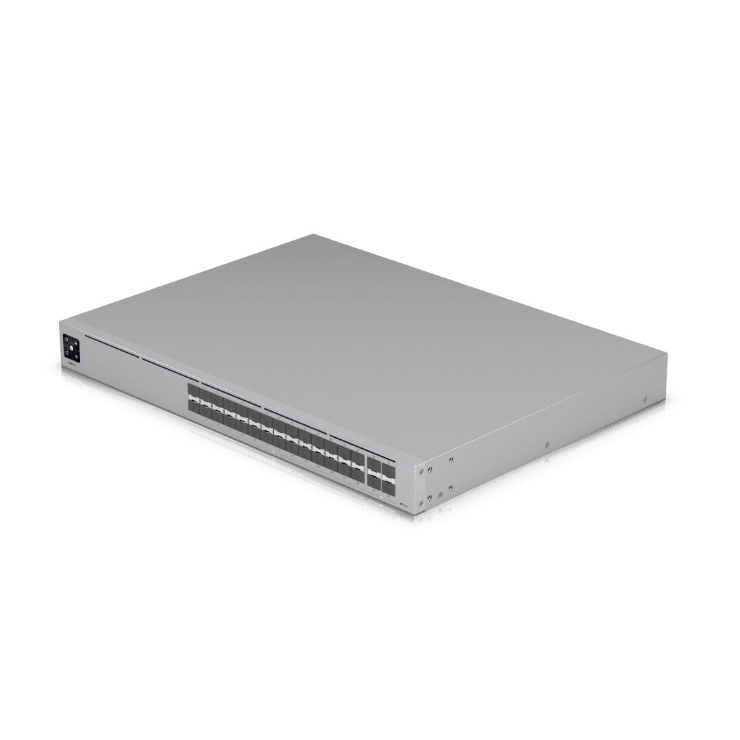 Boost your business network with this high-performance 1U rackmount Layer 3 switch, designed for seamless connectivity in offices, data centers, and enterprise environments. With 28 high-speed 10G SFP+ ports and 4 ultra-fast 25G SFP28 ports, it effortlessly handles large volumes of traffic, ensuring smooth video streaming, VoIP calls, cloud applications, and collaborative workflows without interruptions. Its advanced Layer 2 and Layer 3 features, including VLANs, inter-VLAN routing, DHCP, and network isolation, make managing complex networks simple and secure. Built for reliability, it supports DC power backup, storm control, and robust traffic management, while the intuitive touchscreen display and UniFi Network management make monitoring and configuration straightforward. Lightweight yet durable, this switch delivers enterprise-grade performance, low latency, and scalable network control for growing businesses. 1-Year Limited Warranty.