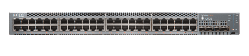 The Juniper EX3400 is a cost-effective, high-performance 1U access switch designed to meet the rigorous demands of converged data, voice, and video enterprise networks. Cloud-ready and fully integrated with Juniper Wired Assurance and Mist AI, the EX3400 offers simplified onboarding via Zero Touch Provisioning (ZTP) and proactive anomaly detection through Marvis AI. This versatile platform supports Virtual Chassis technology, allowing up to 10 switches to be managed as a single logical device, and features hardware-based MACsec AES-128 encryption for secure link-layer data confidentiality. With a total switching capacity of 336 Gbps, support for high-density PoE+ (up to 30W per port), and 12 QoS queues for granular traffic prioritization, the EX3400 delivers carrier-grade reliability and advanced management features typically reserved for high-end campus solutions
