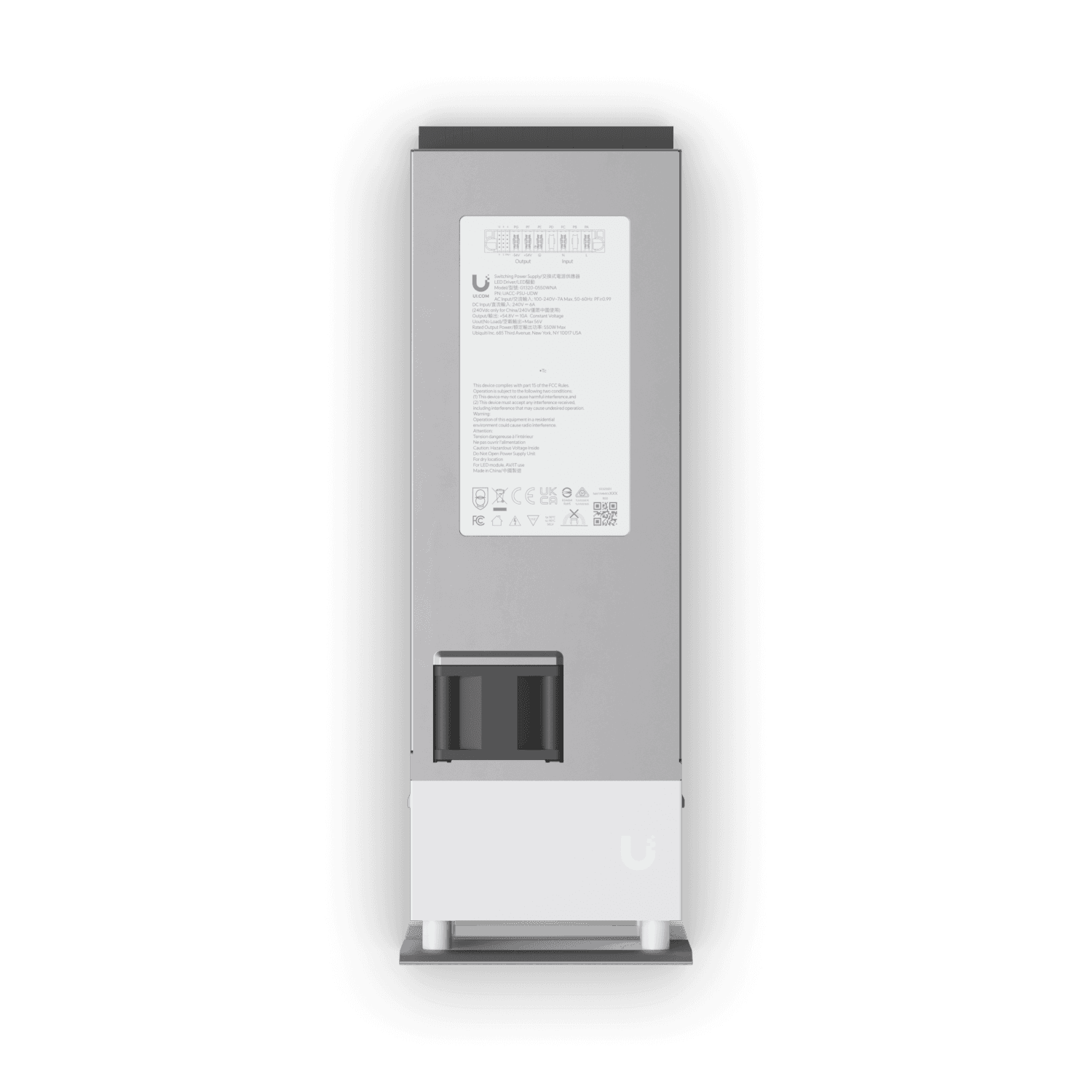Ensure continuous energy delivery for demanding enterprise infrastructure with the NDAA-compliant 550W Ubiquiti UACC-PSU-UDW Power Module, meticulously engineered within a durable aluminum alloy, SGCC steel, and polycarbonate enclosure to cleanly convert universal 100–240V AC inputs via a specialized JYP-M1207D-RT03R connector into a highly stable 54.8V DC (10A) output for relentless hardware reliability. 1-Year Limited Warranty.