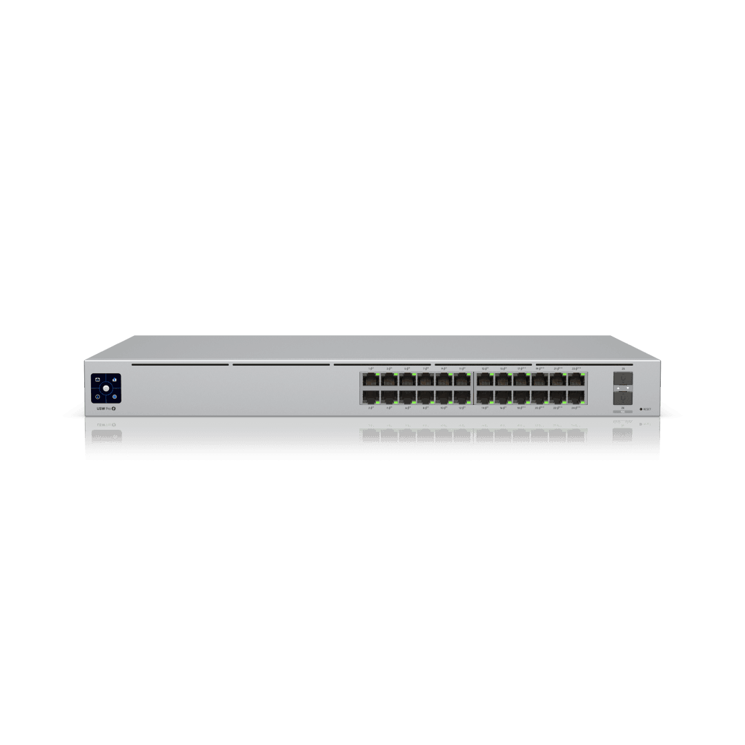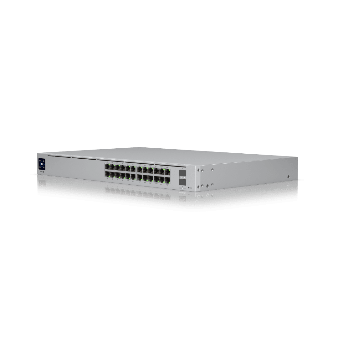This 1U rackmount Pro 24 PoE managed switch is designed to power and connect modern business, office, and enterprise networks with ease. Featuring 24 Gigabit Ethernet ports with a mix of PoE+ and high-power PoE++ support and 10G SFP+ uplinks, it lets you run and power access points, IP cameras, VoIP phones, and professional AV equipment from a single, centralized device. Built for reliability and scalability, it supports advanced traffic management, secure network segmentation, and seamless Layer 3 routing for growing organizations, while redundant power options and intuitive UniFi Network management simplify deployment and ongoing operations. Ideal for companies that need dependable performance, clean installations, and room to expand, this switch delivers enterprise-grade networking in a compact, professional form factor. 1-Year Limited Warranty.