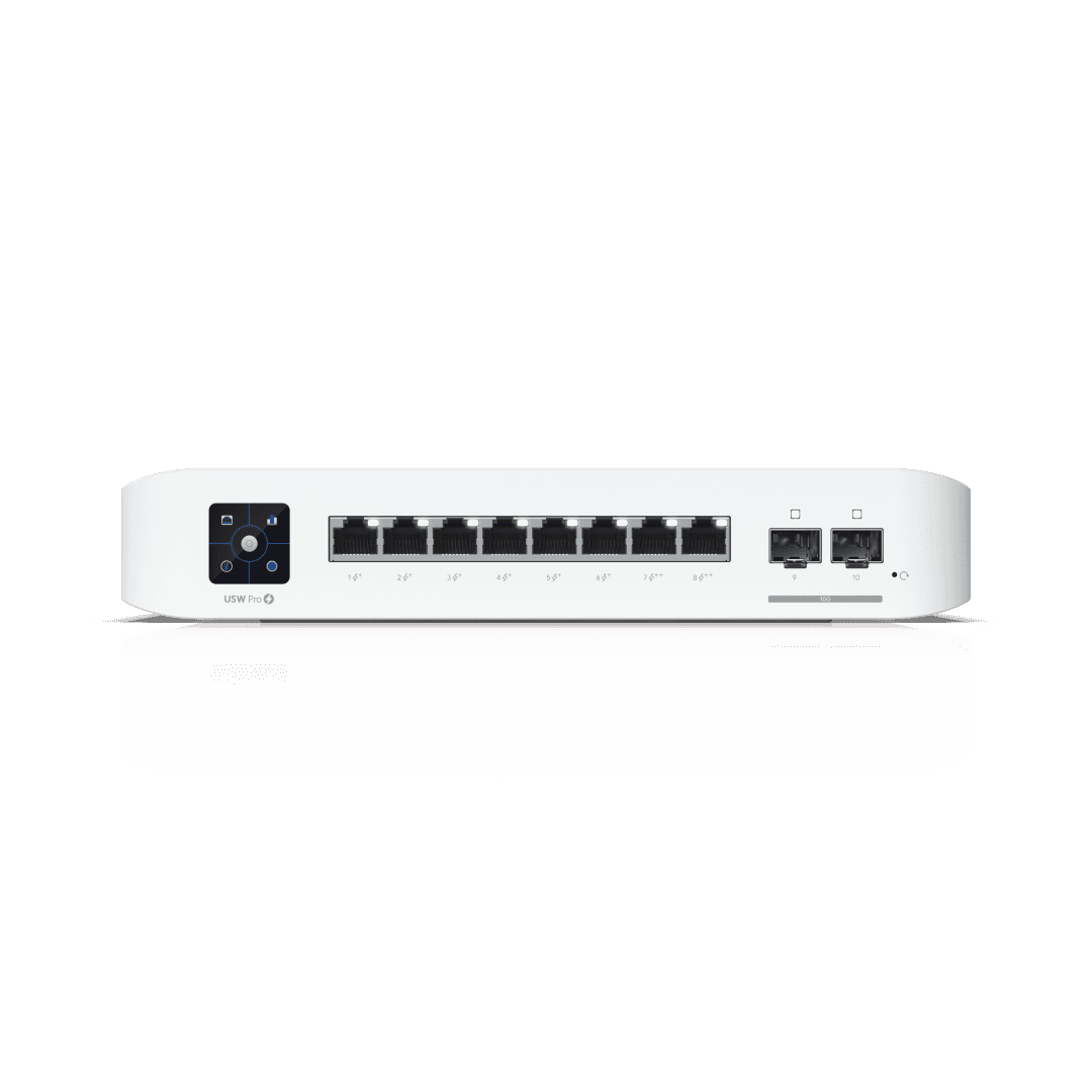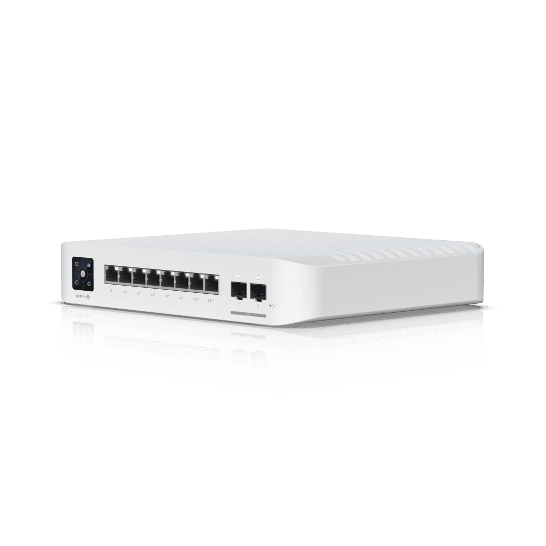 Pro 8 PoE is a compact, enterprise-grade managed network switch designed to deliver high performance, advanced routing, and flexible PoE power for modern business and professional environments. Ideal for offices, retail spaces, studios, and branch locations, it can power a mix of access points, IP cameras, VoIP phones, and other devices while also supporting high-speed fiber uplinks for fast, reliable data flow. Built-in Layer 3 capabilities enable efficient traffic routing and network segmentation, helping businesses scale with confidence as demands grow. With a sleek desktop or wall-mounted design, intuitive touchscreen display, and centralized management through UniFi Network, Pro 8 PoE offers powerful functionality, simplified control, and dependable performance in a space-saving form factor. 1-Year Limited Warranty.