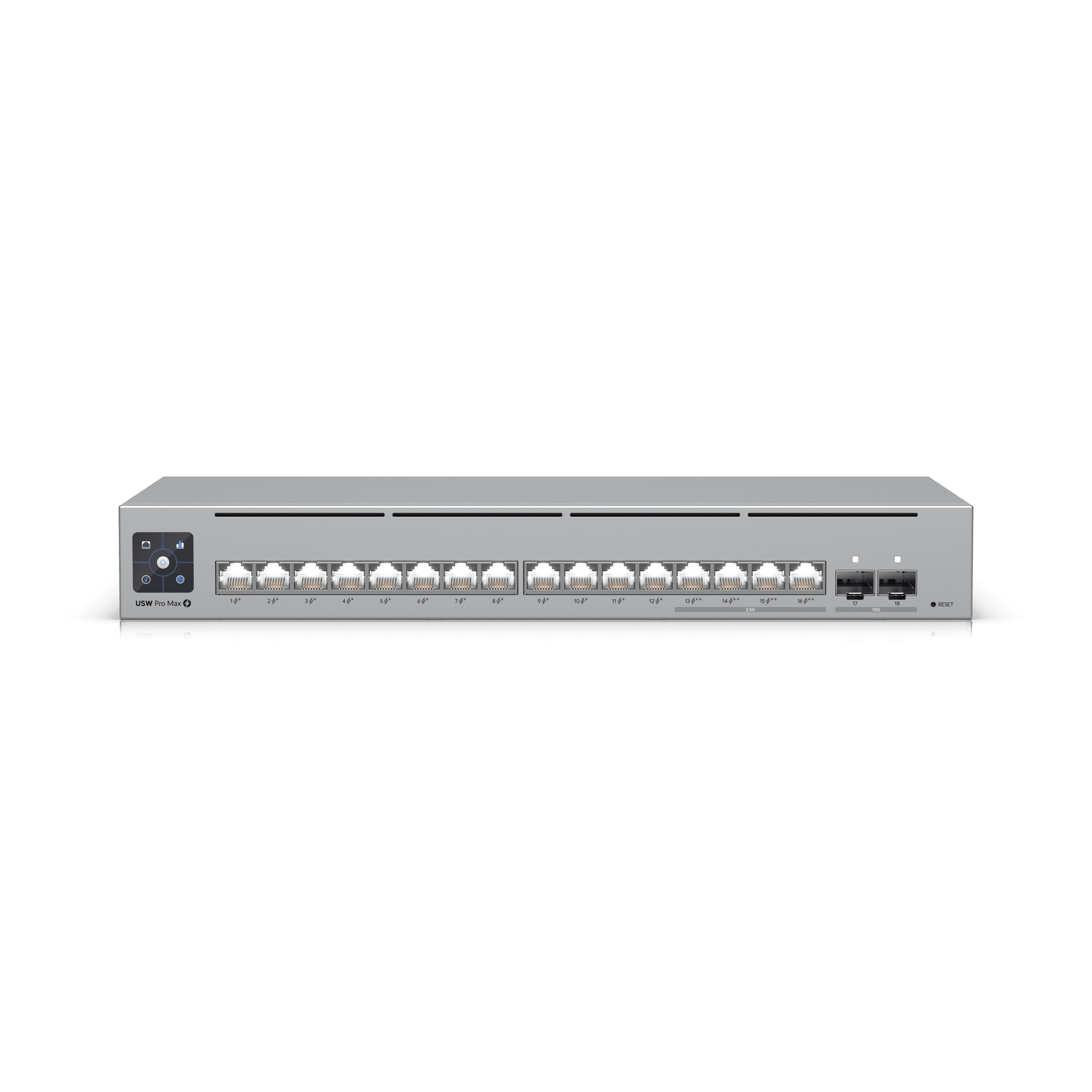 Pro Max 16 PoE is a compact, high-performance managed network switch designed for growing businesses, offices, and AV-focused environments that need both fast connectivity and built-in power delivery. It simplifies network deployments by powering devices like Wi-Fi access points, IP cameras, VoIP phones, and professional AV equipment directly from the switch, reducing the need for extra power adapters and cabling. Advanced Layer 3 features help keep traffic efficient and secure as networks expand, while its flexible design supports rack, desktop, or wall mounting to fit almost any space. Managed through the intuitive UniFi Network platform and enhanced with Etherlighting™ for easy visual port identification, Pro Max 16 PoE delivers enterprise-grade performance and PoE versatility in a space-saving, easy-to-deploy solution. 1-Year Limited Warranty.