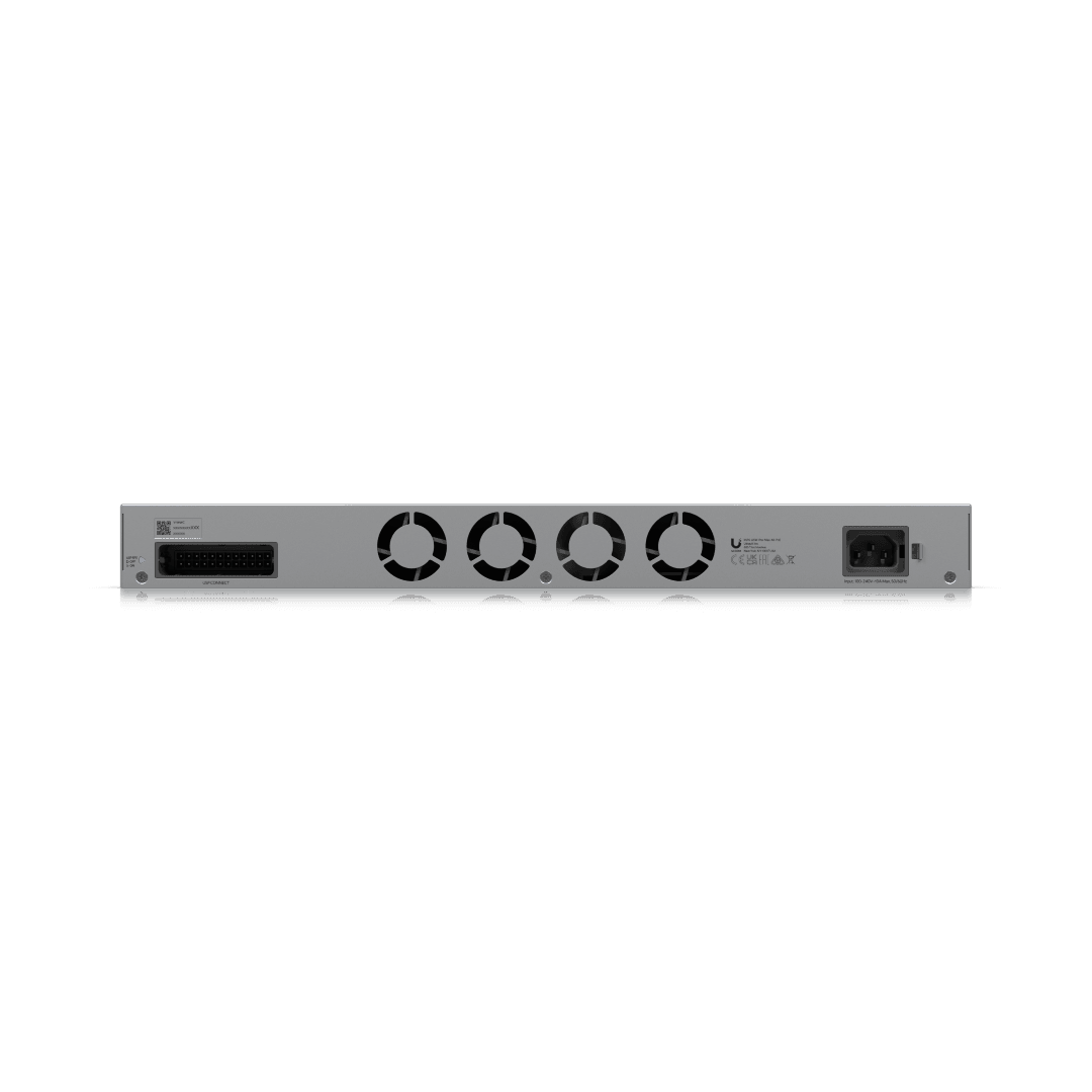 Pro Max 48 PoE is a high-capacity, enterprise-grade 1U rackmount managed network switch designed for large offices, campuses, and device-dense environments that require both high-speed connectivity and powerful PoE delivery. It enables centralized power and data for a wide range of devices—including Wi-Fi access points, IP cameras, VoIP phones, and professional AV systems—reducing cabling complexity and improving deployment efficiency. Advanced Layer 3 features help ensure smooth traffic flow, strong network segmentation, and secure performance as networks scale, while robust power redundancy and a massive PoE budget support always-on, mission-critical operations. Managed through the intuitive UniFi Network platform and enhanced with Etherlighting™ for instant visual port identification, USW-Pro-Max-48-PoE delivers scalable performance, simplified management, and enterprise reliability in one powerful switching solution. 1-Year Limited Warranty.