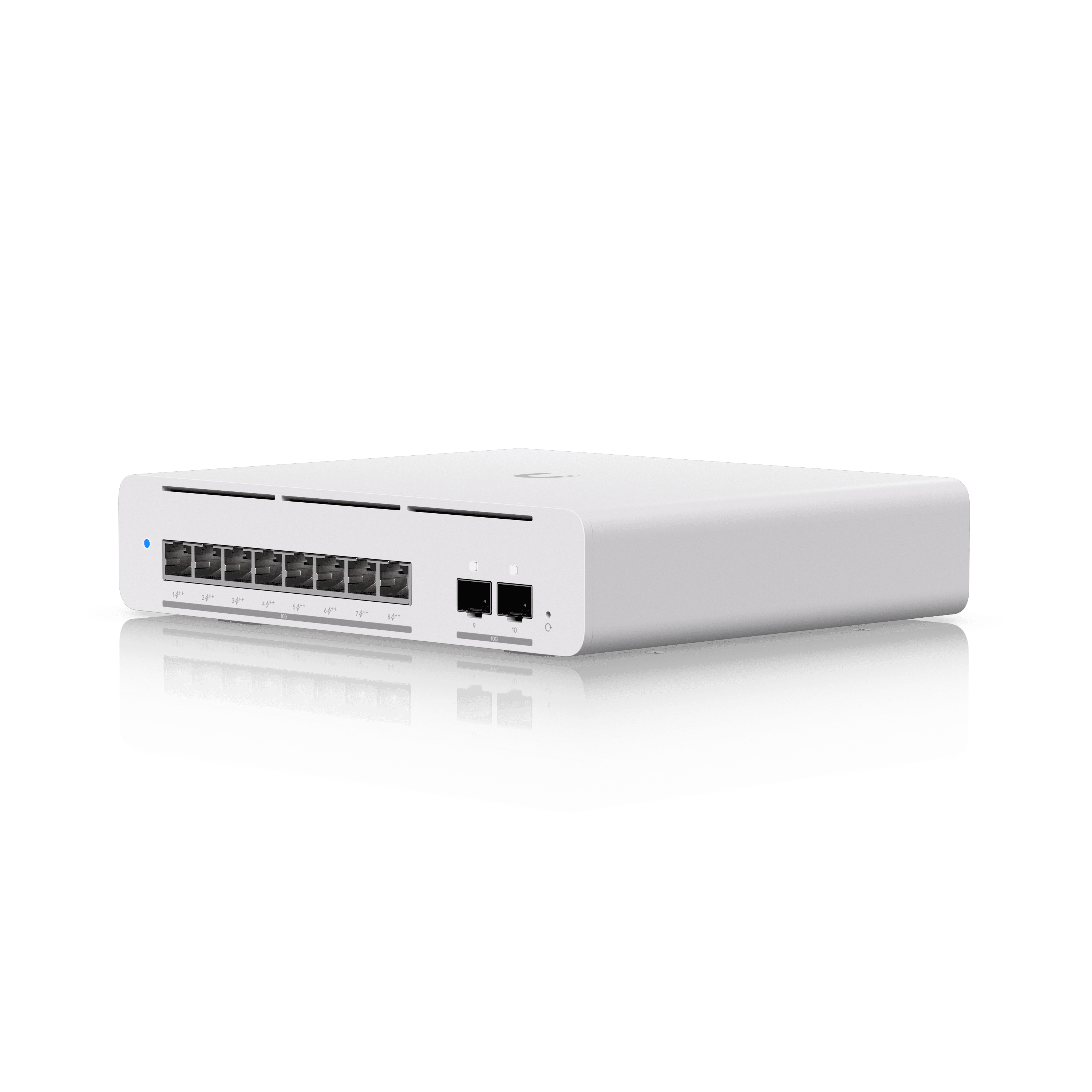 Pro XG 8 PoE is a compact, enterprise-grade managed switch built for high-performance business networks that demand ultra-fast speeds and powerful PoE delivery in a small footprint. Designed for modern offices, studios, retail environments, and professional AV or IT deployments, it provides multi-gig and 10-gig connectivity while powering high-end access points, cameras, AV equipment, and workstations from a single device—reducing clutter and simplifying installations. Advanced Layer 3 capabilities enable smarter traffic routing and network segmentation, helping growing organizations maintain speed, stability, and security as demands increase. With a sleek desktop or wall-mount design, intuitive visual port indicators, and centralized management through UniFi Network, Pro XG 8 PoE delivers enterprise performance, simplified control, and future-ready scalability in a professional, space-efficient solution.