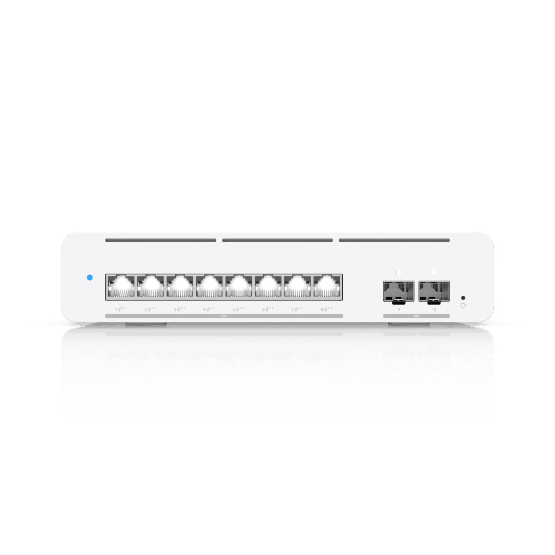 Pro XG 8 PoE is a compact, enterprise-grade managed switch built for high-performance business networks that demand ultra-fast speeds and powerful PoE delivery in a small footprint. Designed for modern offices, studios, retail environments, and professional AV or IT deployments, it provides multi-gig and 10-gig connectivity while powering high-end access points, cameras, AV equipment, and workstations from a single device—reducing clutter and simplifying installations. Advanced Layer 3 capabilities enable smarter traffic routing and network segmentation, helping growing organizations maintain speed, stability, and security as demands increase. With a sleek desktop or wall-mount design, intuitive visual port indicators, and centralized management through UniFi Network, Pro XG 8 PoE delivers enterprise performance, simplified control, and future-ready scalability in a professional, space-efficient solution. 1-Year Limited Warranty.