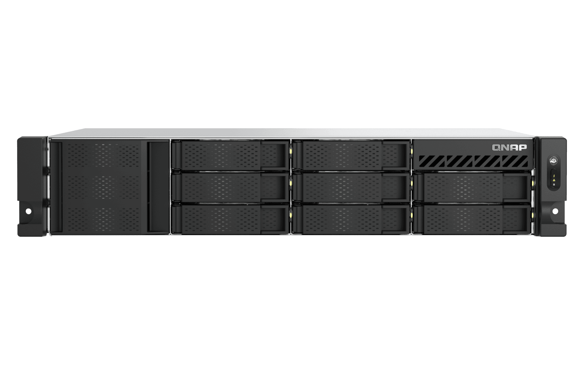 The QNAP TS-855eU is a high-performance, short-depth 2U rackmount storage solution specifically engineered for modern businesses requiring high-density computing in space-constrained environments such as shallow racks or wall-mount cabinets. Powered by an 8-core Intel® Atom® C5125 series processor and supporting the ZFS-based QuTS hero operating system, this powerhouse features eight 3.5-inch SATA 6Gb/s drive bays and dual M.2 PCIe Gen 3 slots for lightning-fast NVMe SSD caching. Equipped with dual 2.5GbE ports and expandable via PCIe Gen 3 slots for 10GbE/25GbE networking, it is optimized for virtualization, high-speed backup, and intensive file-sharing workflows. With support for up to 128 GB of DDR4 ECC memory and advanced data reduction technologies like inline deduplication and compression, the TS-855eU ensures maximum storage efficiency and mission-critical data integrity in a compact, energy-efficient form factor.