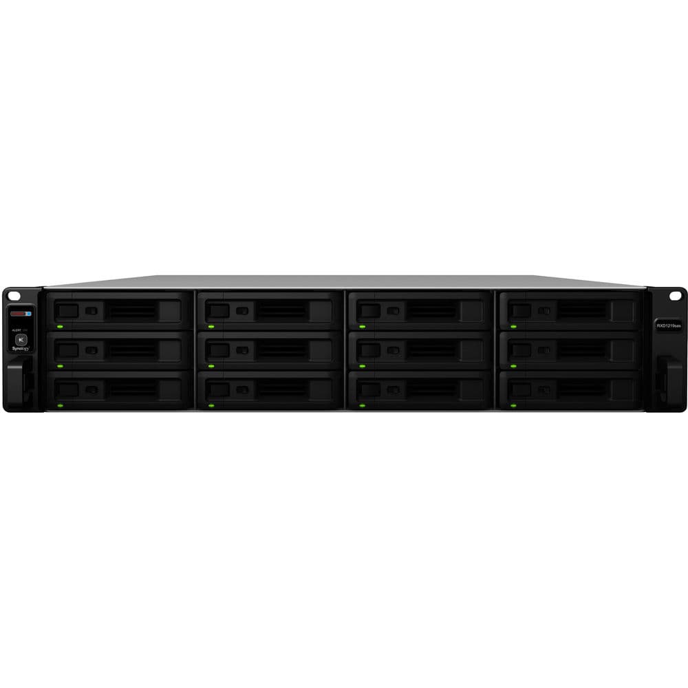 The Synology RXD1219sas is a high-capacity 12-bay 2U rackmount storage expansion unit designed for seamless scalability with Synology SA3400D high-availability NAS systems. Supporting both 3.5" and 2.5" SAS hard drives and SSDs with hot-swappable drive bays, this expansion unit delivers up to 192TB of total raw capacity for demanding enterprise deployments. Features dual mini-SAS HD input and output ports for high-speed connectivity with minimal data latency, ensuring maximum throughput in mission-critical environments. Built with dual redundant SAS modules and redundant power supplies to maintain continuous uptime during component replacement or maintenance. Plug-and-play design enables quick installation and automatic recognition through Synology DiskStation Manager (DSM) for effortless capacity expansion. Add up to two RXD1219sas units to the SA3400D for a total of 36 drive bays, providing on-demand storage scaling for growing data requirements. Hot-swappable system fans ensure reliable cooling while minimizing service disruptions. Ideal for enterprise data centers, virtualization environments, and high-availability storage clusters requiring flexible, reliable expansion with zero downtime. Backed by Synology's quality engineering and reliability standards for mission-critical business operations.